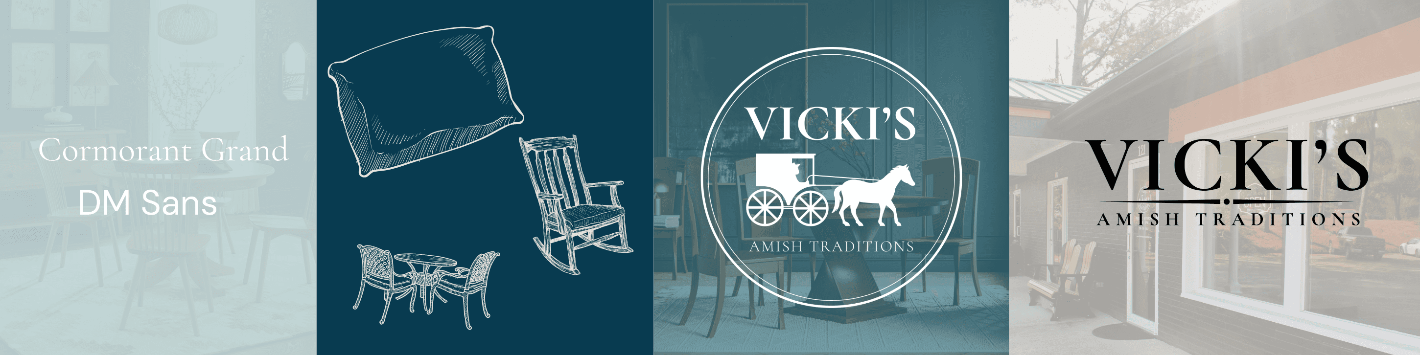 Vicki's branding doesn't compete well with other luxury furniture retailers in the area. However, her branding must stay close to the Amish imagery as a large portion of her clientele chose her store exclusively because of the Amish. She needed a way for her new branding to both encapsulate her modern, luxurious products, while staying close to her roots in Amish Traditions.
